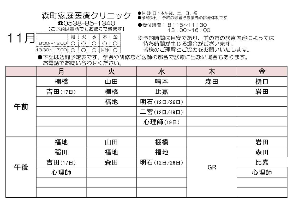 ※診療体制は予定であり、担当医師が急に変更する可能性もございます。